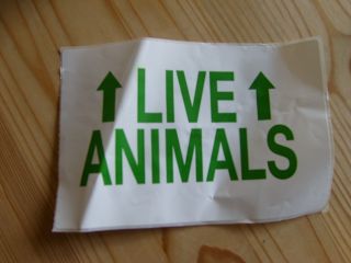 Aufkleber-LIVE ANIMALS für alle Flugboxen.