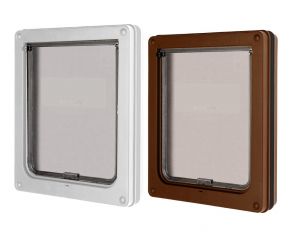 Diese Hundetür zeichnet sich besonders durch ihre robuste Konstruktion und ihre sichere Verriegelungsplatte aus. Die große Tür ist für Labradore, Schäferhunde und andere große Hunde bis zu Schulterhöhen von 63cm geeignet. Die mittelgroße Tür ist für Spaniels, Terriers, Pudel, Beagles etc. bis zu Schulterhöhen von 46cm geeignet. Die kleine Tür ist speziell für sehr große Katzen oder kleine Hunde wie etwa Yorkshire Terriers, Pekinesen, Dackel, Zwergpudel und Spaniels bis zu Schulterhöhen von 36cm konzipiert.