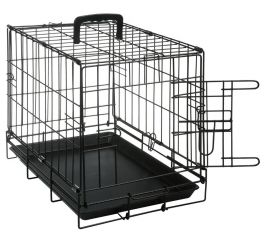Der schwarze Drahtkäfig in verschiedenen Größen bietet Hunden einen sicheren Rückzugsort. Ob als Transportbox auf Reisen oder als ruhiger Platz zu Hause, in der Box kann sich der Hund stets geschützt und geborgen fühlen. Dabei erlaubt die Gitterbox dem Hund eine freie Sicht auf das Geschehen um sich herum. Er fühlt sich also weder isoliert, noch wird dem Vierbeiner der Blickkontakt zur Bezugsperson verwehrt. Und umgekehrt hat auch der Halter sein Tier stets im Blick. Dank einer herausziehbaren Kunststoff-Bodenwanne kann der pflegeleichte Käfig einfach gereinigt werden. Ein Tragegriff erleichtert den Transport. Die Käfige sind, bis auf die kleinste Größe, mit zwei Türen ausgestattet. Der so mögliche Ein- und Ausstieg an Seite und Front erhöht die Flexibilität sowie die Stellmöglichkeiten.