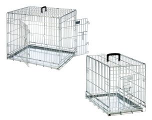 Der schwarze Drahtkäfig in verschiedenen Größen bietet Hunden einen sicheren Rückzugsort. Ob als Transportbox auf Reisen oder als ruhiger Platz zu Hause, in der Box kann sich der Hund stets geschützt und geborgen fühlen. Dabei erlaubt die Gitterbox dem Hund eine freie Sicht auf das Geschehen um sich herum. Er fühlt sich also weder isoliert, noch wird dem Vierbeiner der Blickkontakt zur Bezugsperson verwehrt. Und umgekehrt hat auch der Halter sein Tier stets im Blick. Dank einer herausziehbaren Kunststoff-Bodenwanne kann der pflegeleichte Käfig einfach gereinigt werden. Ein Tragegriff erleichtert den Transport. Die Käfige sind, bis auf die kleinste Größe, mit zwei Türen ausgestattet. Der so mögliche Ein- und Ausstieg an Seite und Front erhöht die Flexibilität sowie die Stellmöglichkeiten.