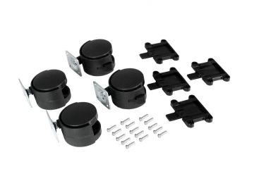 Das Rollenset besteht aus vier um 360° drehbaren Doppelrollen. Die 2 Vorderräder mit Blockiersystem sowie die 2 Hinterräder lassen sich einfach und ohne Werkzeug montieren.Dieses separat bestellbare Rollenset passend zu den Transportboxen Nomad Größe 4 bis 7 erleichtert den Stellplatzwechsel der großen Boxen.