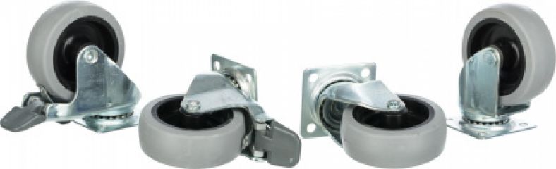 4 lenkbare Räder, davon 2 mit Blockiersystem